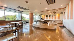 メインエントランスにあるラウンジです。朝食(有料)も提供しております。