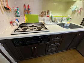 3口ガスコンロやグリルもあり、女性にも好まれる造りです。