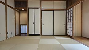 こちらが1階奥にある8帖の和室です。床暖房もあります。