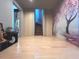 【中二階】玄関からリビングに上がる前にございます。桜のクロスが素敵です。