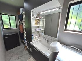 【洗面所】浴室のを出ると、洗面台・洗濯機がございます。