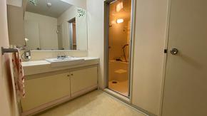 洗面、脱衣スペース。その横には浴室。仕様は分譲当時のものになります。
