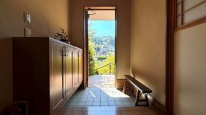 【玄関】南向きの玄関です。前面道路から少し高い位置が入り口となる為風が通ります。