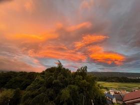 【紅く染まる空】夕刻には、情緒ある空模様を楽しめます。(オーナー様提供写真)