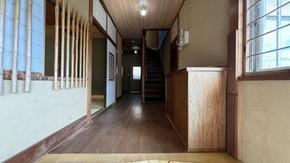 玄関及び階段:趣のあるゆったりとした広さの玄関です。床は板張り仕様ですが、リフォームが必要です。