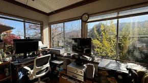 山並みを借景に南側に広がる景色はこの家の宝です。庭で過ごせる時間を大切に生活してきました。自然と一緒に生活できる割には生活インフラも悪くなく、健康維持のため湯河原駅にも歩いて行くことも多いです。また、300メートルほど下り五所神社前にはバス停もあります。