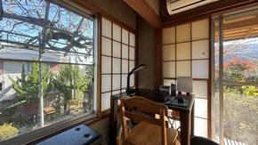 東側和室:外には藤棚が設置され、南側には桜を臨みます。