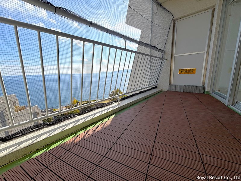 昭和50年10月築、熱海が誇るヴィンテージレジデンス「プラザ伊豆山」10階のご紹介です。バルコニーから紺碧の相模湾を一望します。