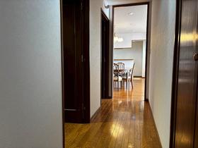 左手に寝室(約8.7帖)と主寝室(約12.8帖)が見えてきました。