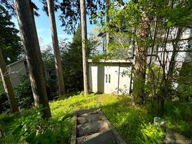 【敷地】やや北側傾斜の地形です。敷地に倉庫を設置してます。