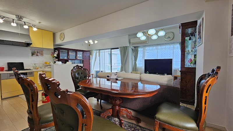 リビングにあるこちらのダイニングテーブルセットもお譲り頂ける形になります。(居抜き状態での引渡し)