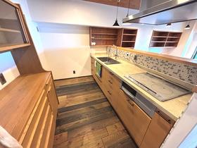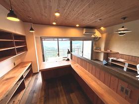 【キッチン】対面キッチンは海を眺めながらお料理が楽しめます。収納も多く、お部屋に合わせた木目が特徴です。