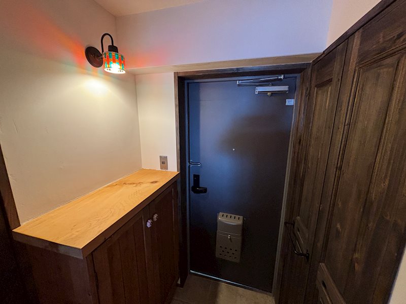 【玄関】下駄場は左右にあり、大切な靴も沢山置けます。素敵なライトもオーナー様のこだわりの一つです。