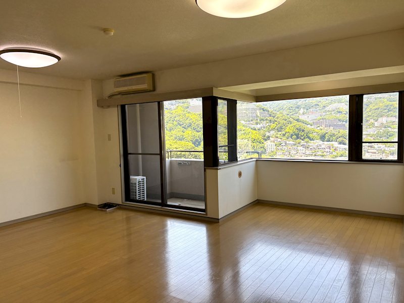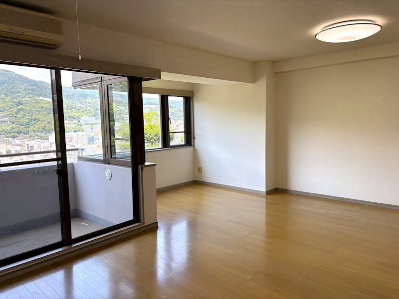 【LDK】正面に熱海の山々を望む景色。約16.2帖のLDKです。
