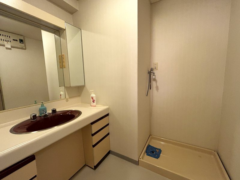【洗面所】広めの洗面台に洗濯機置き場が併設されています。