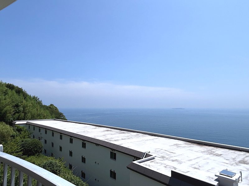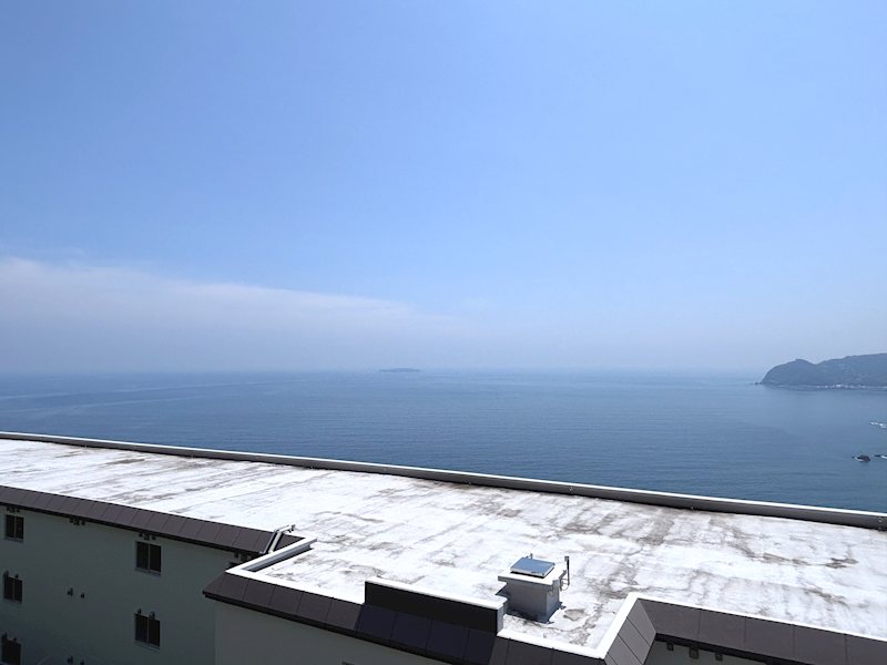 網代方面の眺望。海と空のコントラストに心癒されます。
