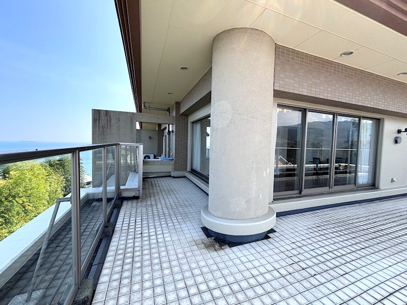【海と緑を享受する価値あるロケーション】平成19年8月築、真鶴エリア最高峰リゾートレジデンス「レアージュ真鶴」4階角部屋2LDKのご紹介です。同レジデンス内で最も広いゆったりサイズの113.22㎡。新築時を思わせる綺麗な室内、バルコニーは奥行き3mと広く、こちらからのパノラマ眺望は絶景の一言。圧巻はワールドクラス44.98㎥のルーフバルコニー。真鶴半島頂上地点からの湘南方面から房総半島、伊豆半島と見える眺望はエリア髄一。是非現地にてこの眺めをご確認下さいませ。スローな真鶴リゾートライフをお考えの方、お問い合わせお待ちしております。