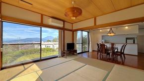 1階和室:芝庭越しに富士山を一望、眼下には三島や沼津、更に駿河湾も臨みます。