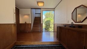 玄関は和の趣きを感じる庇と余裕のある玄関ホール、リビングに出れば平坦に整地された芝庭が目を引き、その先に自慢の眺望を楽しめます。
