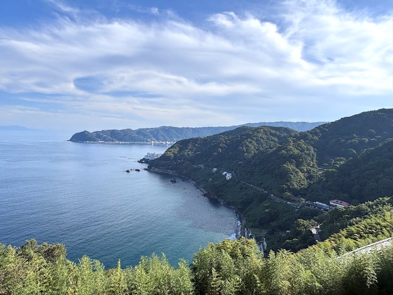 【眺望】眼下にアカオリゾートのプライベートビーチ。その奥は網代の街並みです。