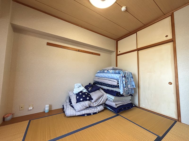 6帖の和室3人は川の字で布団を敷いて寝れるかと思います。