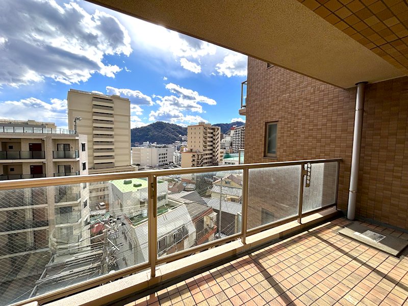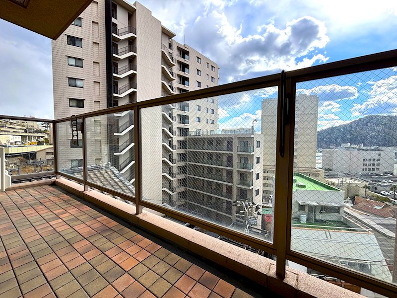 【バルコニー】おしゃれな床柄で、柵はすりガラスとなっております。