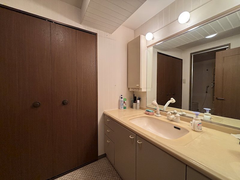 【洗面所】広々とした洗面所スペース。奥の収納部分には洗濯機を置くことが出来ます。