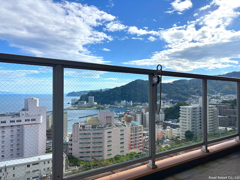 【高台眺望】前面に遮る建物のない、海と熱海の景色を眼下に収めることができます。