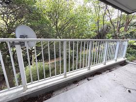 【A棟】1階のバルコニー。緑に包まれた環境。