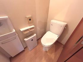【B棟】1階トイレ。ウォシュレット機能・手洗いが完備。