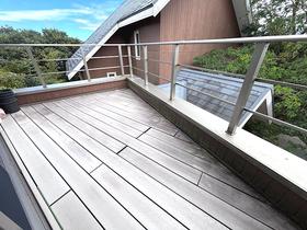 【B棟】2階ウッドデッキテラス。バーベキューや午後のティータイム等を演出します。