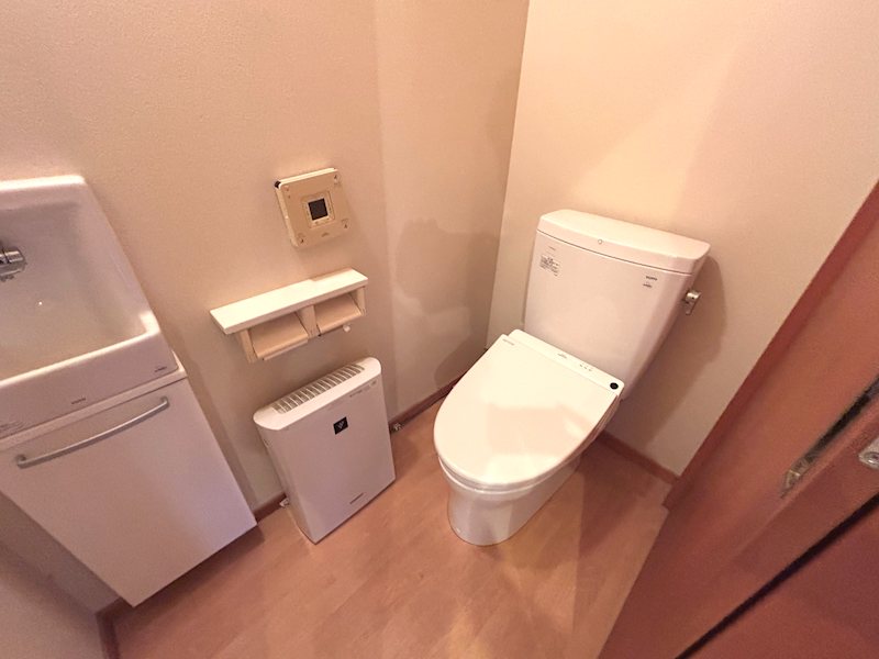 【A棟】1階トイレ。ウォシュレット機能を装備。