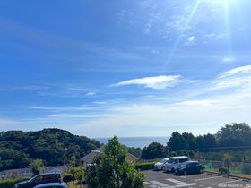 【バルコニー正面】1階レベルからでも海を遠望できる、緑とのバランスがとれた眺望です。