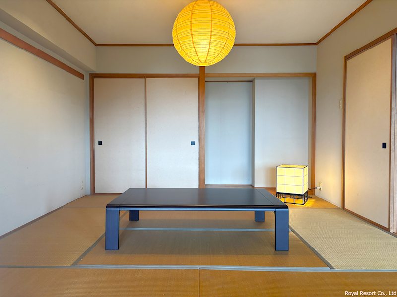 【和室】落ち着いた空間、8畳の和室でお寛ぎいただけます。ベットが苦手の方は寝室としてご利用ください。
