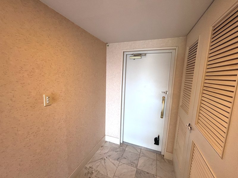 【玄関】エレベーターで5階へ。室内のご紹介です。玄関の床は大理石を採用し高級感を演出しております。