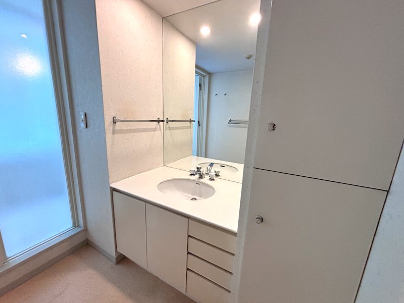 【洗面室】大鏡を設えた洗面化粧台が設置されております。