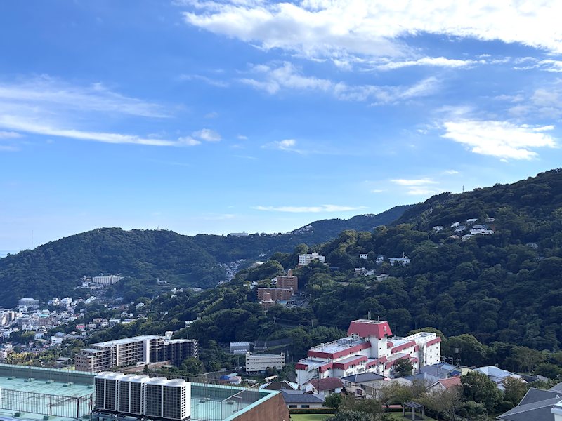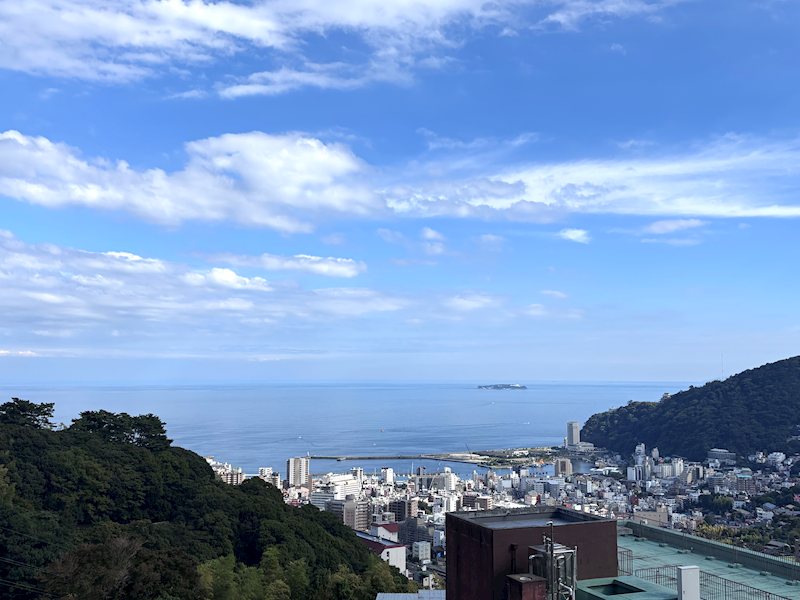 【眺望】熱海市街・相模湾が一望。初島の向こうに水平線が見えます。