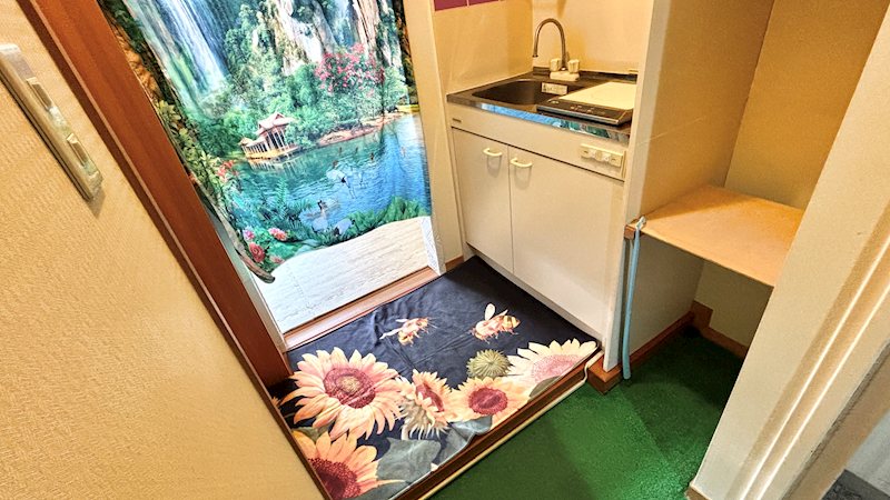 【玄関、キッチン】コンパクトでリゾートに向いた造りになっています。