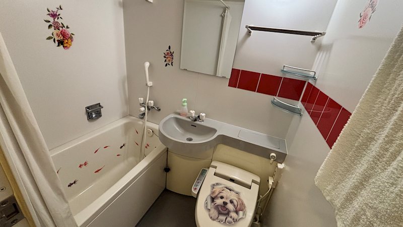 【浴室】ステッカーでドレスアップされています。お掃除が行き届いており、とてもきれいです。