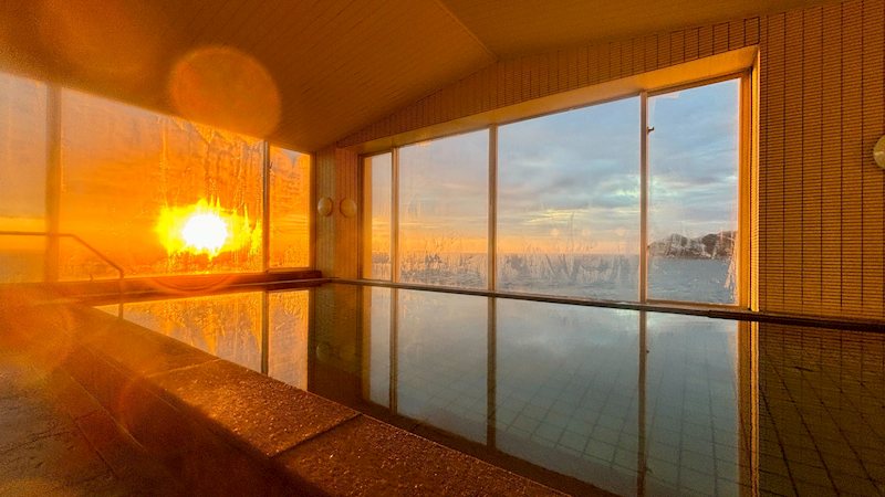 【温泉大浴場】マンション内にはオーシャンビューの温泉大浴場があります。