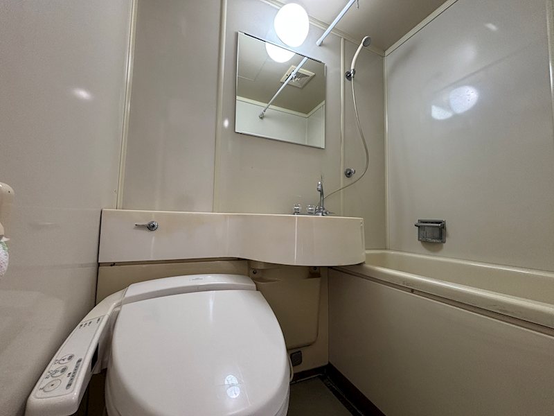 【浴室】3点ユニットのお手洗いと浴室。鏡を交換しております。リフォームのご相談も承ります。