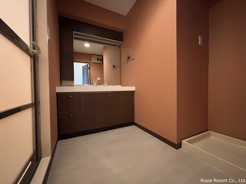 【洗面所】水回りは統一されたカラーで、落ち着いたイメージです。