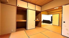 【和室】リビングに隣接する和室です。和室は二間続きとなっており奥行きのある空間になっております。