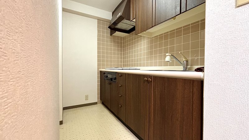 【キッチン】キッチンは分譲当時のままの内装です。水栓は交換必須です。