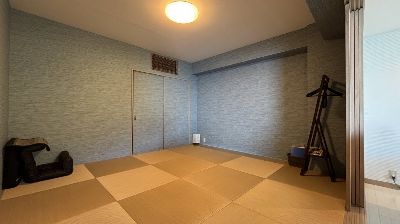 和室:琉球畳を使用した和モダンなスペース(8帖)。