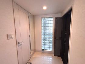 【玄関】エレベーターで9階へ。それでは物件室内の紹介。こちらは玄関。ガラスブロックがリゾート感を演出。