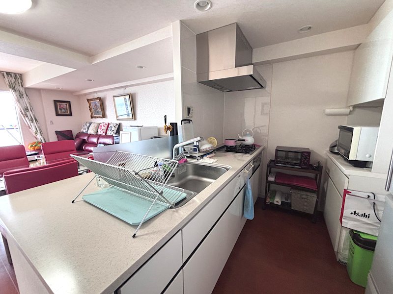 【キッチン】対面式キッチン約3.2帖。紺碧の相模湾を見ながら料理が可能です。