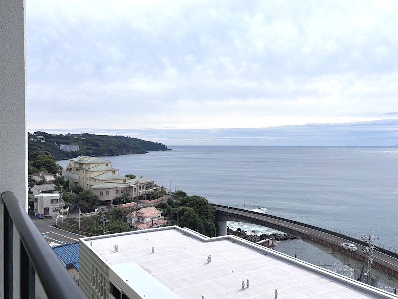 【眺望】バルコニーから東側の眺望。真鶴半島の緑が色鮮やかです。