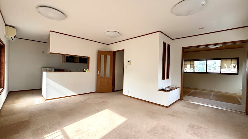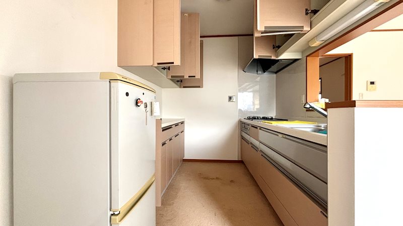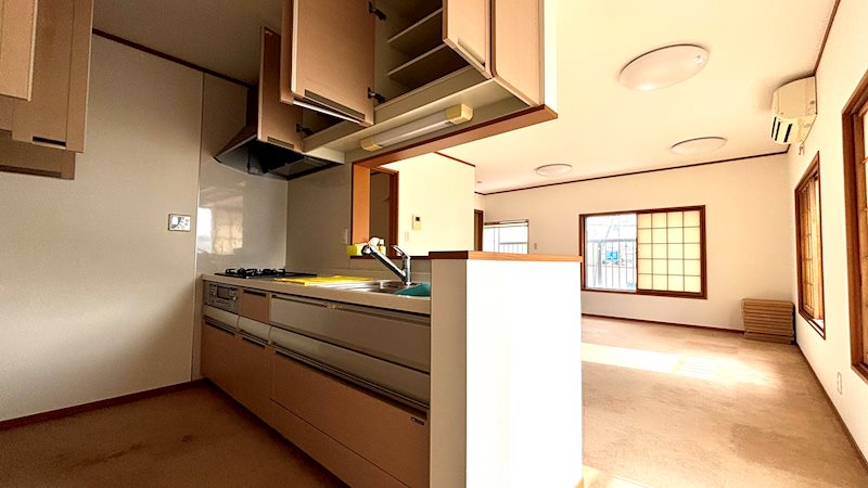 【キッチン】対面式のキッチン空間は広々としたつくりになっております。現状利用されておりません。