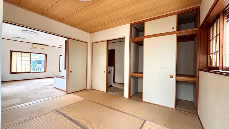 【和室】別角度からのお写真です。リビング、廊下からアクセス可能です。